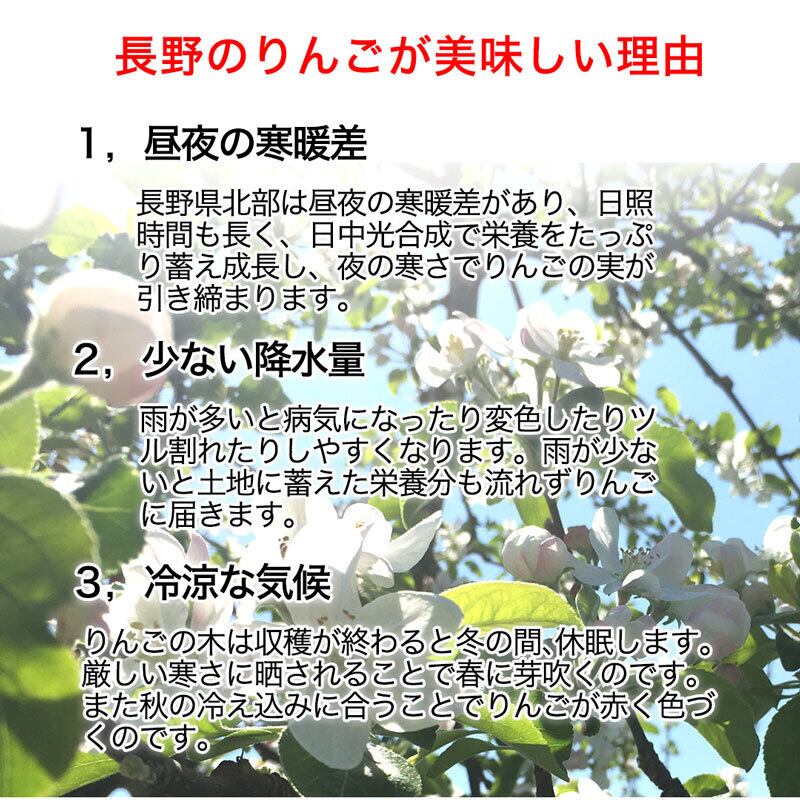 ※ツル割れ:りんごの芯の根が割れて空洞化する現象です。果実の成長に果皮が追いつかず割れてしまうため生じます。完熟している証拠とも言えますが、冷蔵庫で保存し、なるべく早くお召し上がりください。