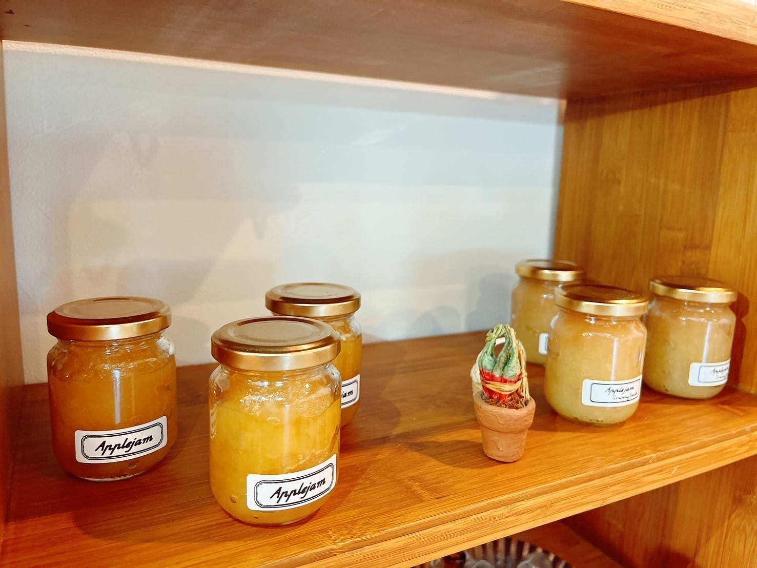 りんご、青りんご、もも、ネクタリン、うめ、あんず、りんごバター、和梨、ぶどう、ブルーベリーなど、