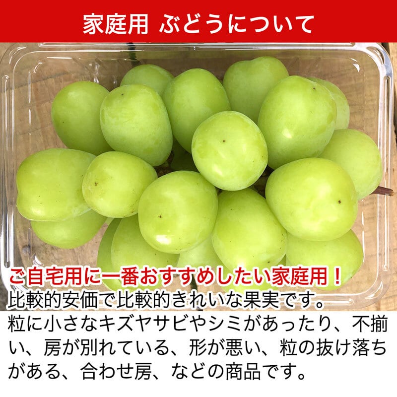 こちらの商品は、粒の表面に若干のキズやサビ、シミがあったり、房が少々小ぶりなシャインマスカットを梱包します。