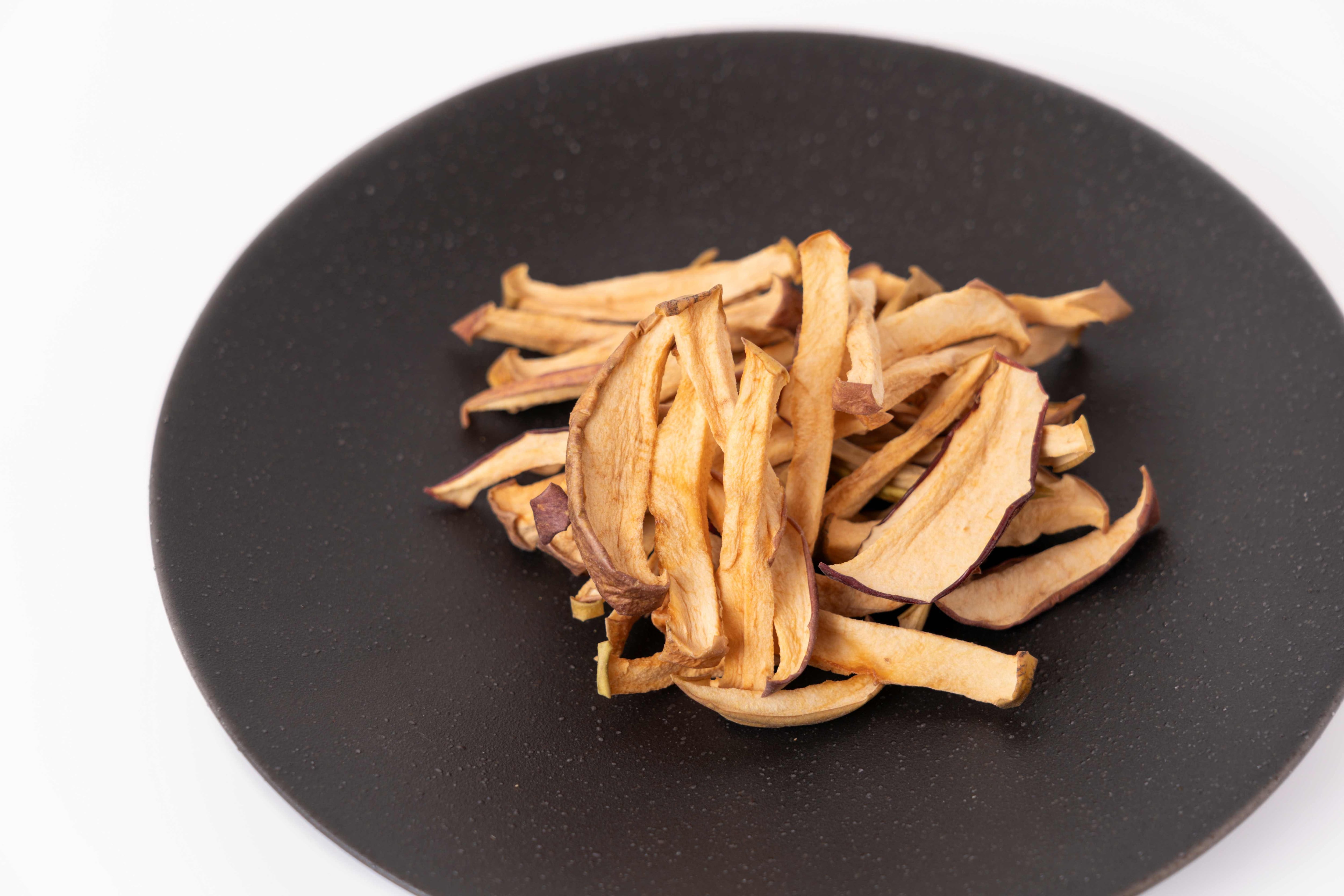 もちろん保存料や着色料は一切使用しておりません。皮ごと乾燥させたので食物繊維もそのまま摂取できます。